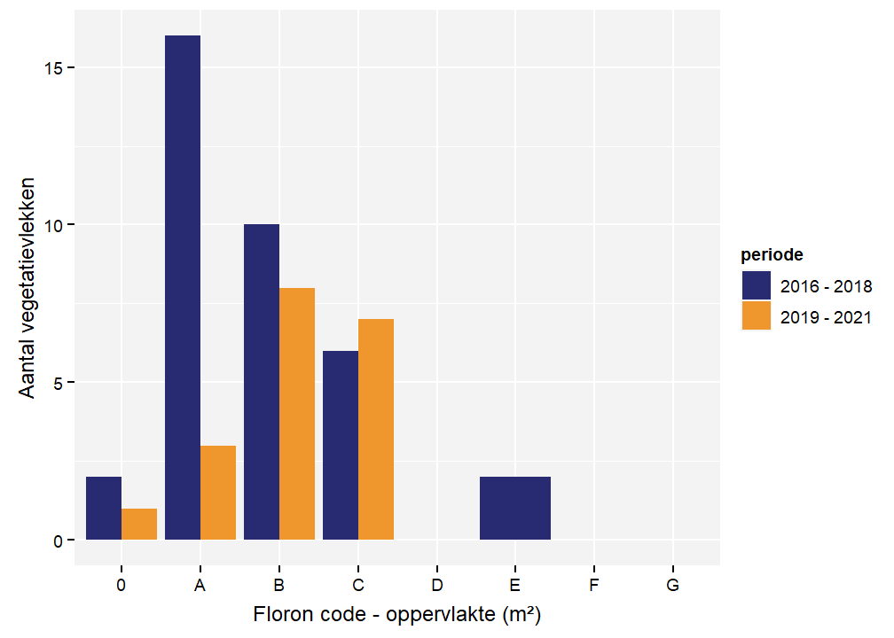 | Plat fonteinkruid | opp (m²) | 0.5 [0-1] | 0 [0-0] | -100 % | 0 % |